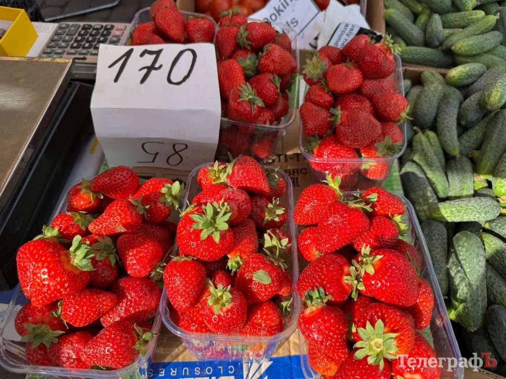 Полуниця на прилавках переважно з заходу України, але можна знайти і місцеву. Сьогодні її ціна — 170–180 грн/кг, хоча ще вчора вона була по 200–220 грн.