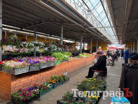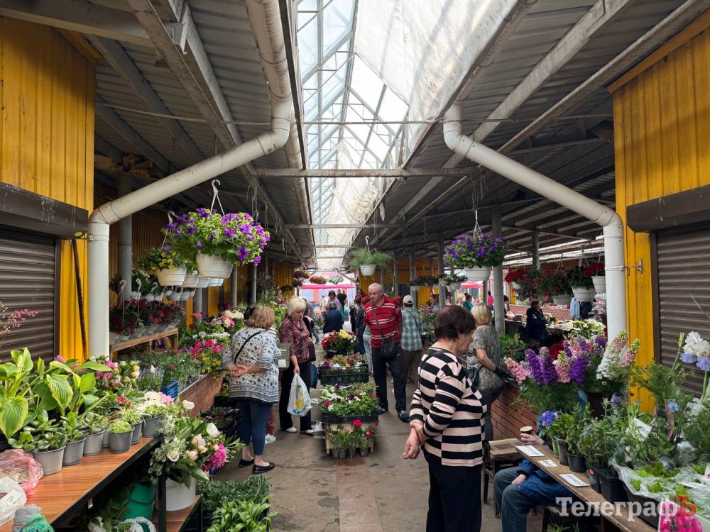 На прилавках багато зелені, свіжих фруктів та навіть розсади — городній сезон триває, хоч весна й прохолодна.