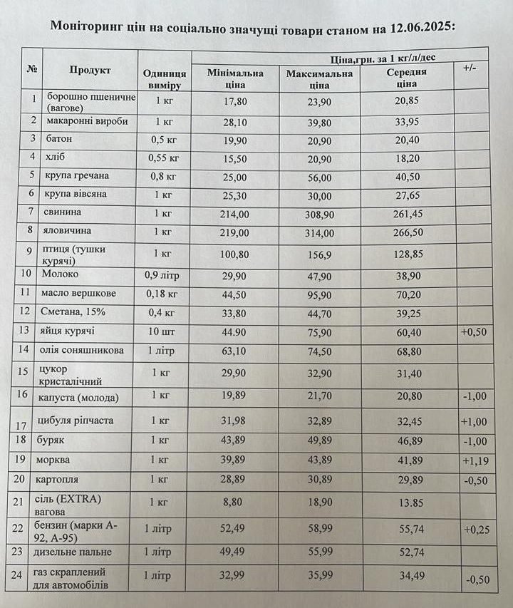 Кременчуцьке районне управління Держпродспоживслужби провело моніторинг цін на соціально значущі товари у торгівельних закладах району станом на 12 червня. З цією інформацією наше видання ознайомила Кременчуцька районна військова адміністрація.