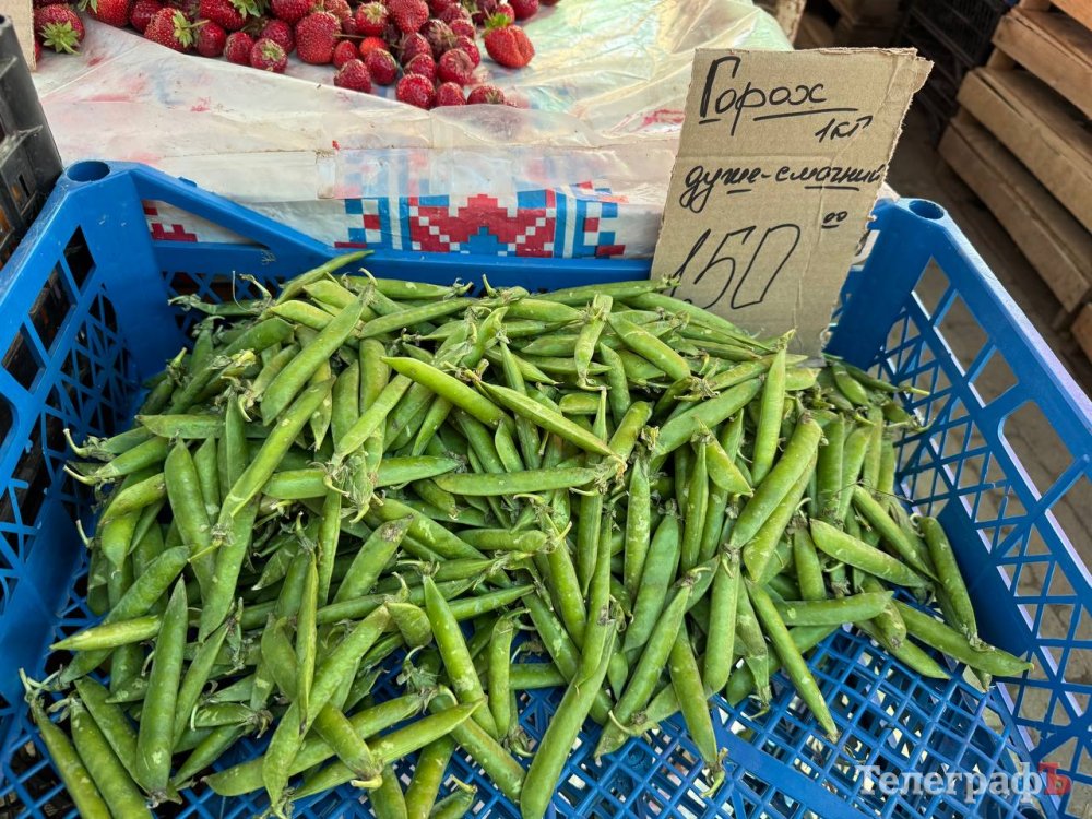 Натомість з’явилася малина (170 грн за літрову банку), порічка (25 грн за 0,5 л баночку), смородина (150 грн/кг) та місцева черешня (250 грн/кг). Привізна — трохи дешевша, 180–200 грн за кілограм. Вишні майже немає — продавці кажуть, врожай знищили заморозки.