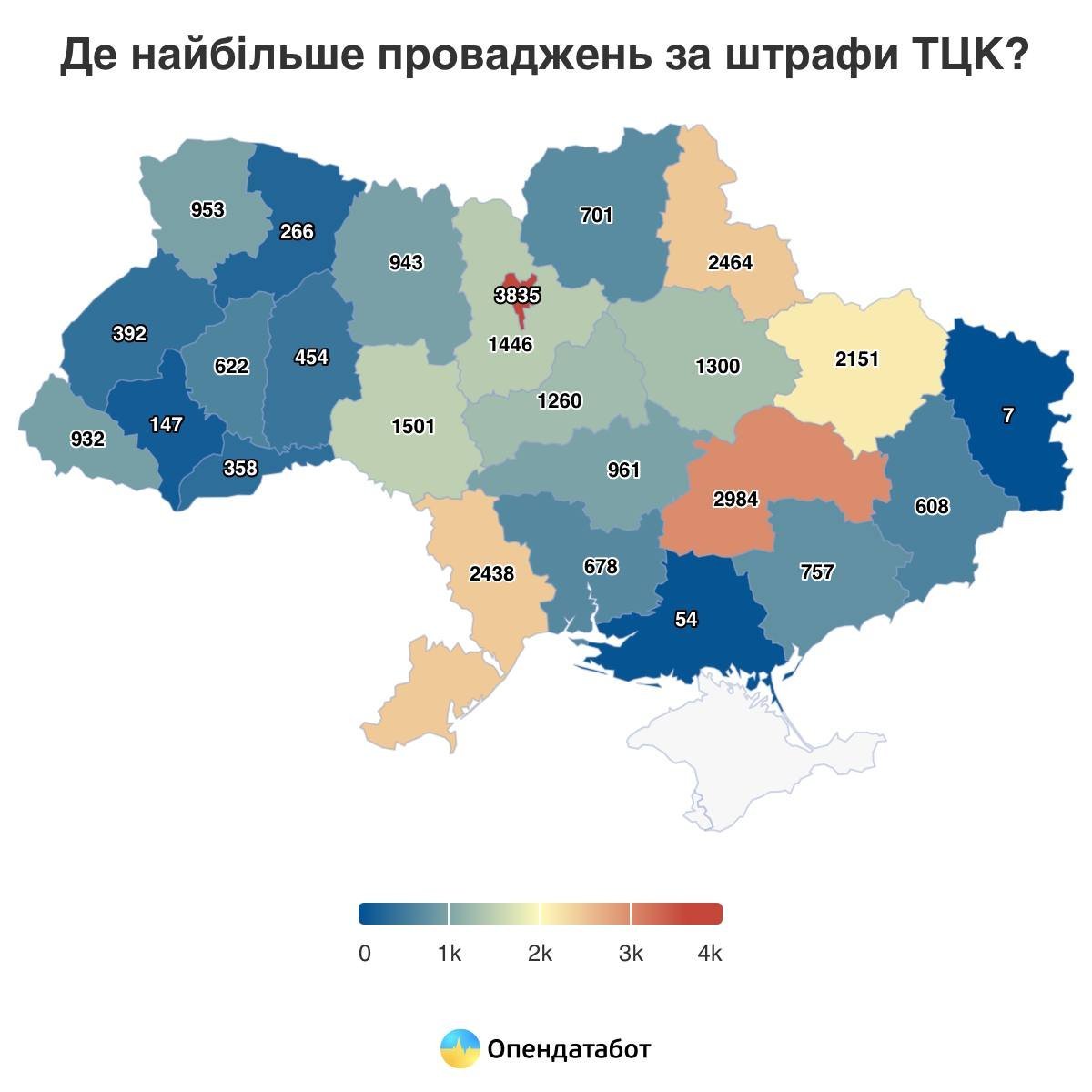 Лідером за кількістю накладання штрафів від ТЦК є Київ — 3?835 проваджень з початку року.