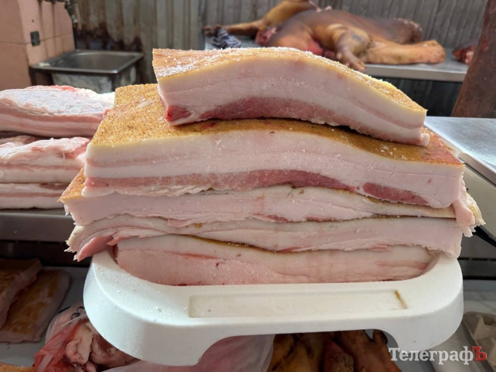 - Свинина — вирізка по 250 грн/кг, ошийок — 300, лопатка — 200, ребра — від 100 до 180 грн, сало — 280, підчеревина — 180, на засмажку — 15 грн.