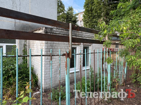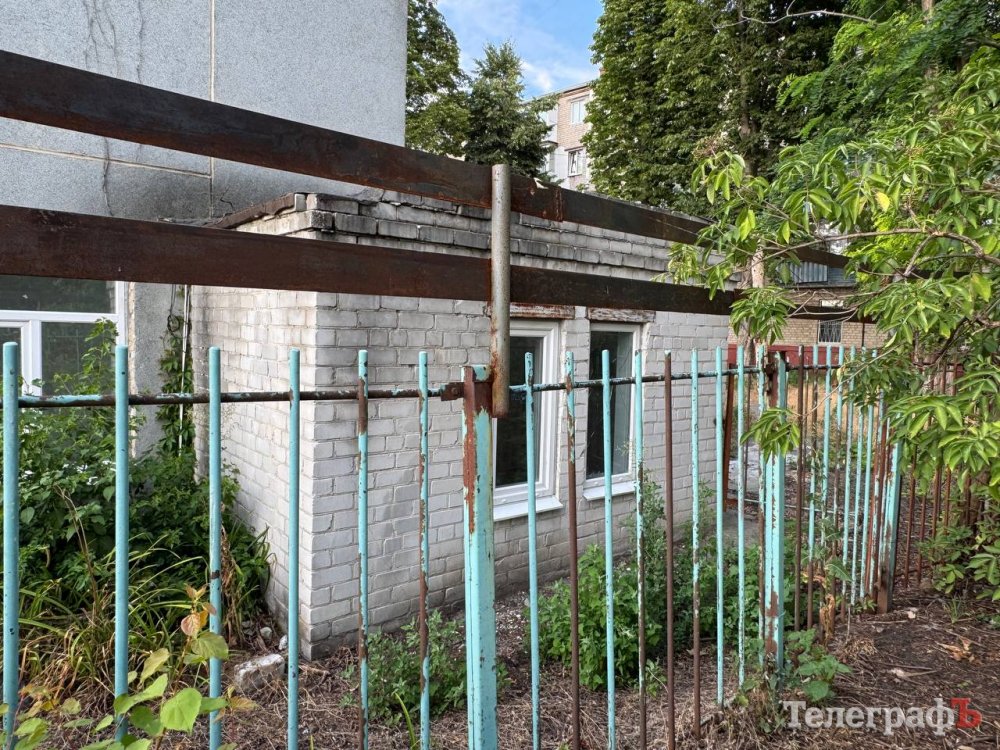 Так зараз виглядають поліпшення колишнього рентгенкабінету, що стоїть практично на набережній. Замінені пластикові вікна вже розбиті, навколо будівлі — хащі та іржаве загородження.