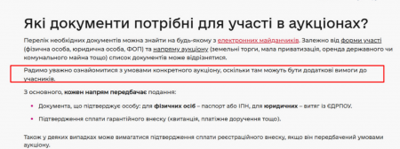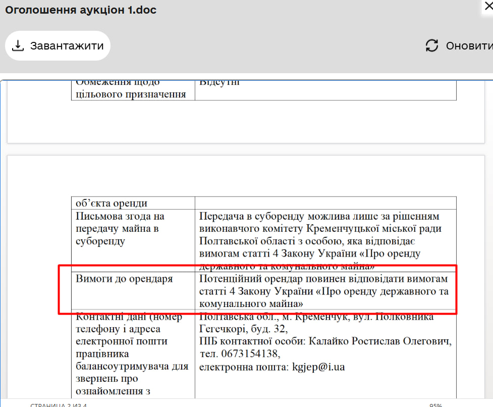 Ми запитали в управлінні міського майна Кременчука, чи виставляються до учасників аукціонів додаткові вимоги, зокрема, про фінансову аналітику (звіти, документи про відсутність збитків тощо). Отримали відповідь, що ні, бо це суперечить закону: