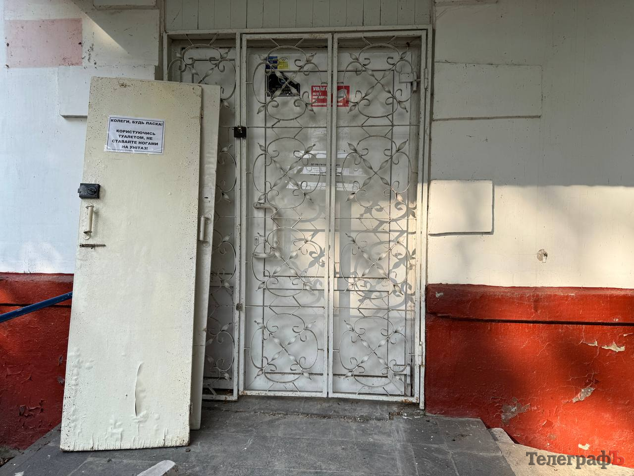 В приміщенні колишньої поліклініки ми почули голоси. Головний вхід був зачиненим.