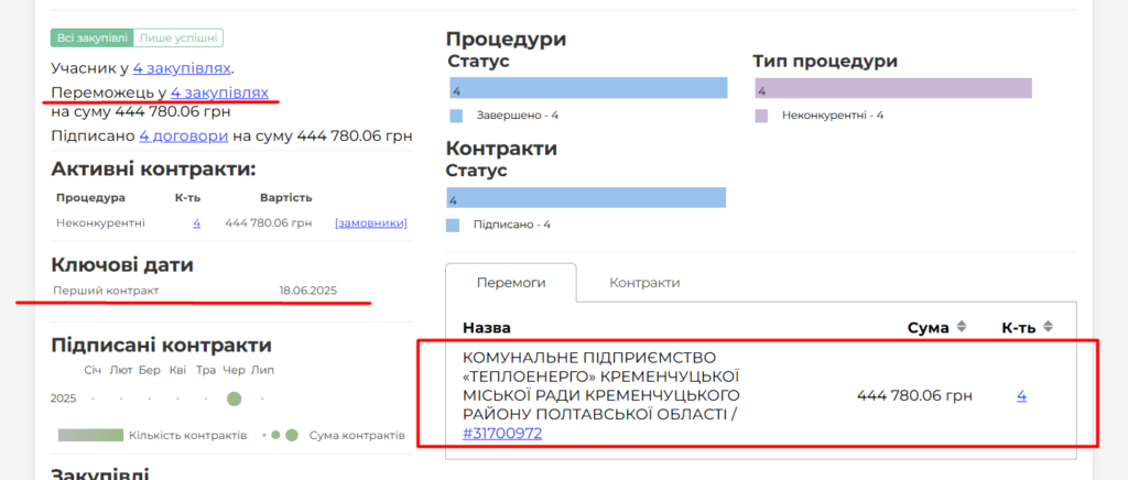 - «ТОВ «Оптстрой+» за 2025 виграла тендерів майже на 100 млн грн. З них 4 млн грн — тендери у Кременчуці. Наші колеги повідомили про ймовірну переплату на будівництві укриття у Полтаві, яким займається згадана компанія.