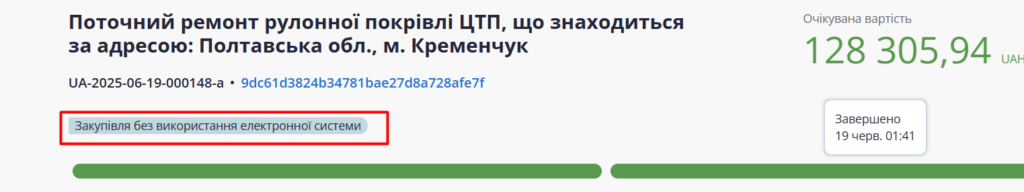 - 18-19 червня пан Мартіросян (як ФОП) виграє тендерів майже на півмільйона гривень. За даними сервісу ClarityProject, це перша участь підприємця в тендерах і такий успіх: одразу 4 впевнені перемоги. Він знов єдиний кандидат, закупівлі проводять без електронних торгів, а три послуги — ідентичні: ремонт покрівлі котельні для «Теплоенерго», одна — ремонт покрівлі бойлерної. Теоретично, можна було б оголосити один тендер на одну послугу з ремонту покрівлі котельні, одразу на всю «котлету». Але тоді вся «котлета» відправиться на публічний аукціон: це обов’язково, якщо сума послуг з поточного ремонту понад 200 тис. грн. А тут всі тендери менші за цю суму, тож можна призначити переможця за спрощеною системою. Будемо пильно слідкувати за перебігом ремонтних робіт.