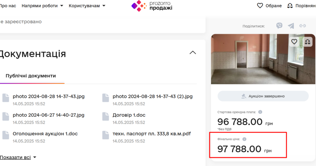 Попри усю привабливість, «сватати» приміщення на аукціоні оренди взялась лише одна компанія. Єдиний учасник автоматично став переможцем. Дані про нього були закриті місяць, аж доки з орендарем не підписали офіційний договір — таке нині законодавство.