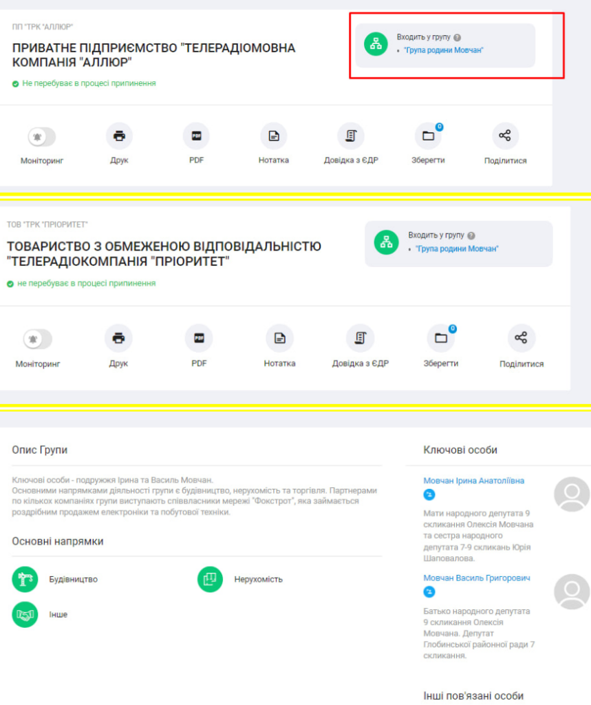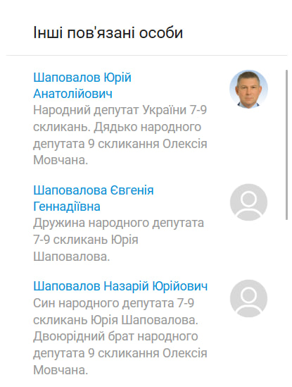 | Зв’язки | Ведуть до оточення нардепа Шаповалова | Ведуть до оточення нардепа Шаповалова |