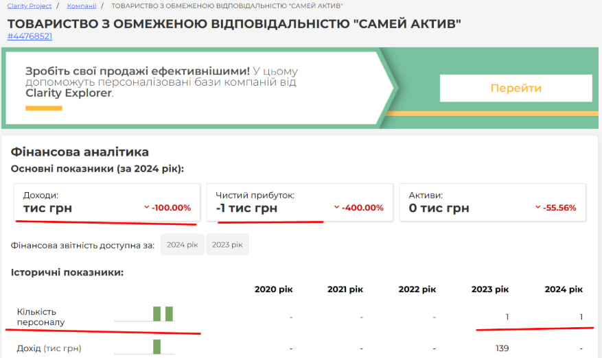 - Чистий прибуток за 2024 рік: мінус тисяча гривень