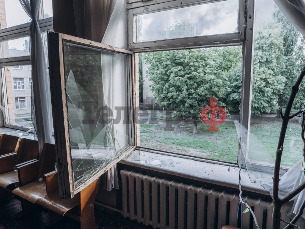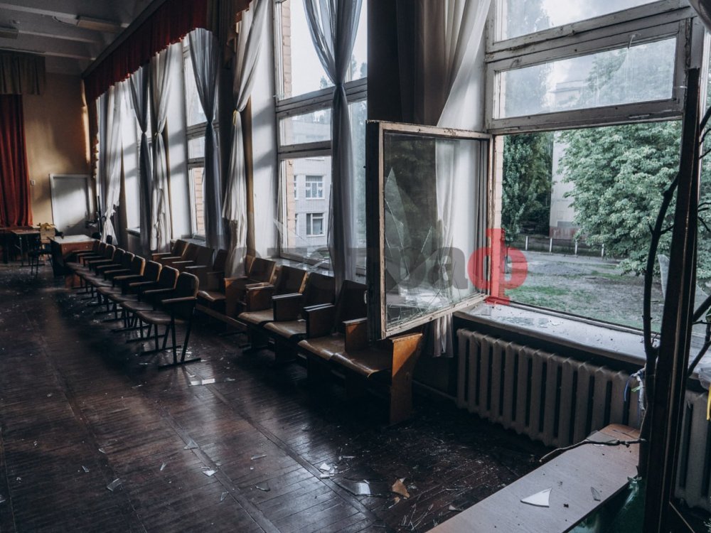 — В актовій залі вікна висотою 6 метрів — вони повністю вибиті, їх немає. Також по багатьох вікнах пішли тріщини, верхні частини металопластикових вікон пошкоджені. Ми вже викликали поліцію, як тільки вони приїдуть і зроблять огляд — ми зразу почнемо ліквідовувати наслідки.
