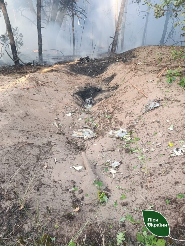 Після чергової російської повітряної атаки уламки ракети впали у лісовому масиві на Полтавщині — це призвело до займання. Про це повідомили у пресслужбі філії «Слобожанський лісовий офіс».