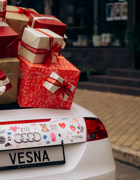 Від гірлянд до святкових подарунків на капоті — її машина стала справжнім символом радості та креативу, привертаючи увагу та даруючи людям посмішки.