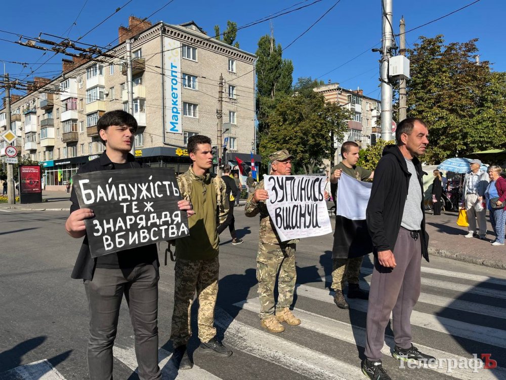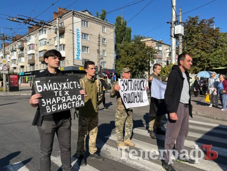 Ветерани та молодь Кременчука тримали прапори, плакати, зупинили рух транспорту. Проте попри звуковий супровід та заклики містян зупинитися і віддати шану загиблим захисникам, це зробили не всі жителі міста.