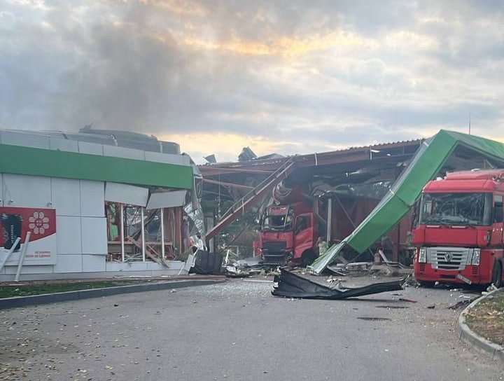 Як о 23.24 повідомили в ДСНС України, внаслідок удару зруйнована будівля заправки. Постраждали четверо людей — троє водіїв та касирка. Вогонь пошкодив автомобілі, обладнання та приміщення станції. До ліквідації наслідків залучали рятувальників, піротехніків, кінологів, а також спеціальну техніку та інженерне обладнання. Пожежу загасили, завали розібрали.