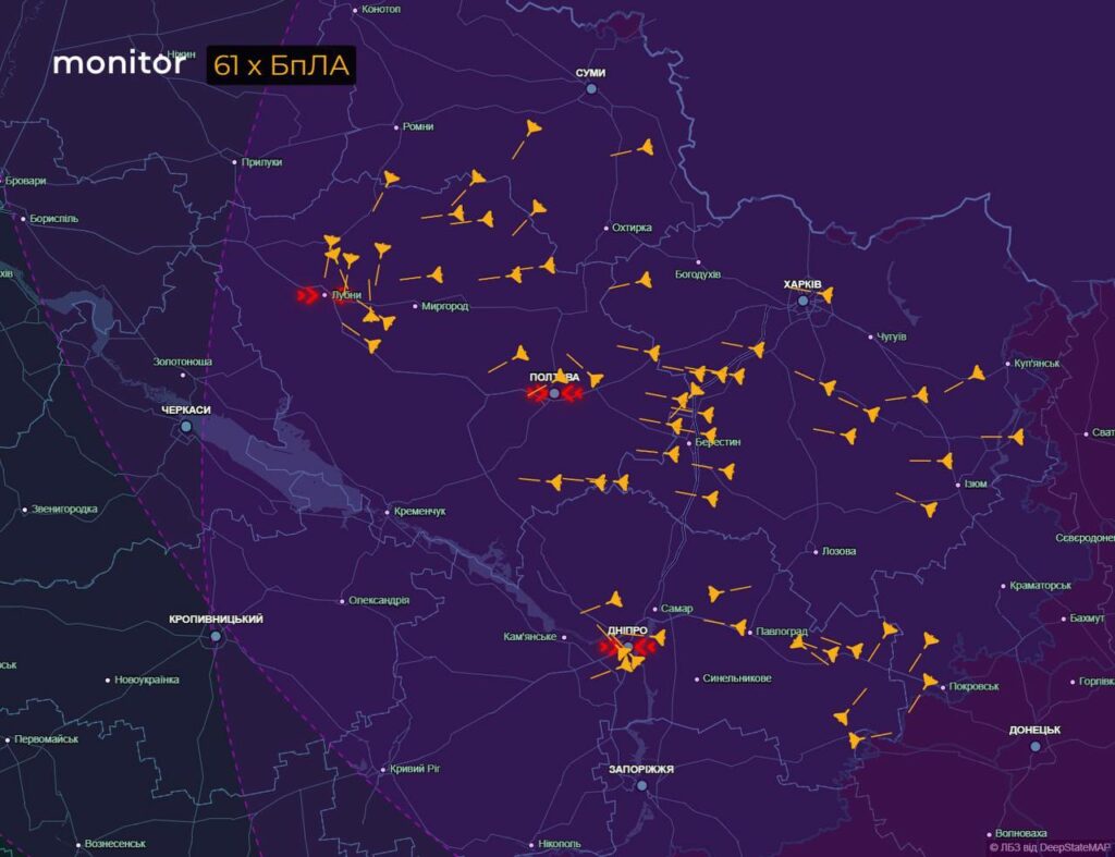 За даними моніторингових каналів, по області цієї ночі було випущено до 25 ракет і понад 100 дронів-камікадзе «Shahed».