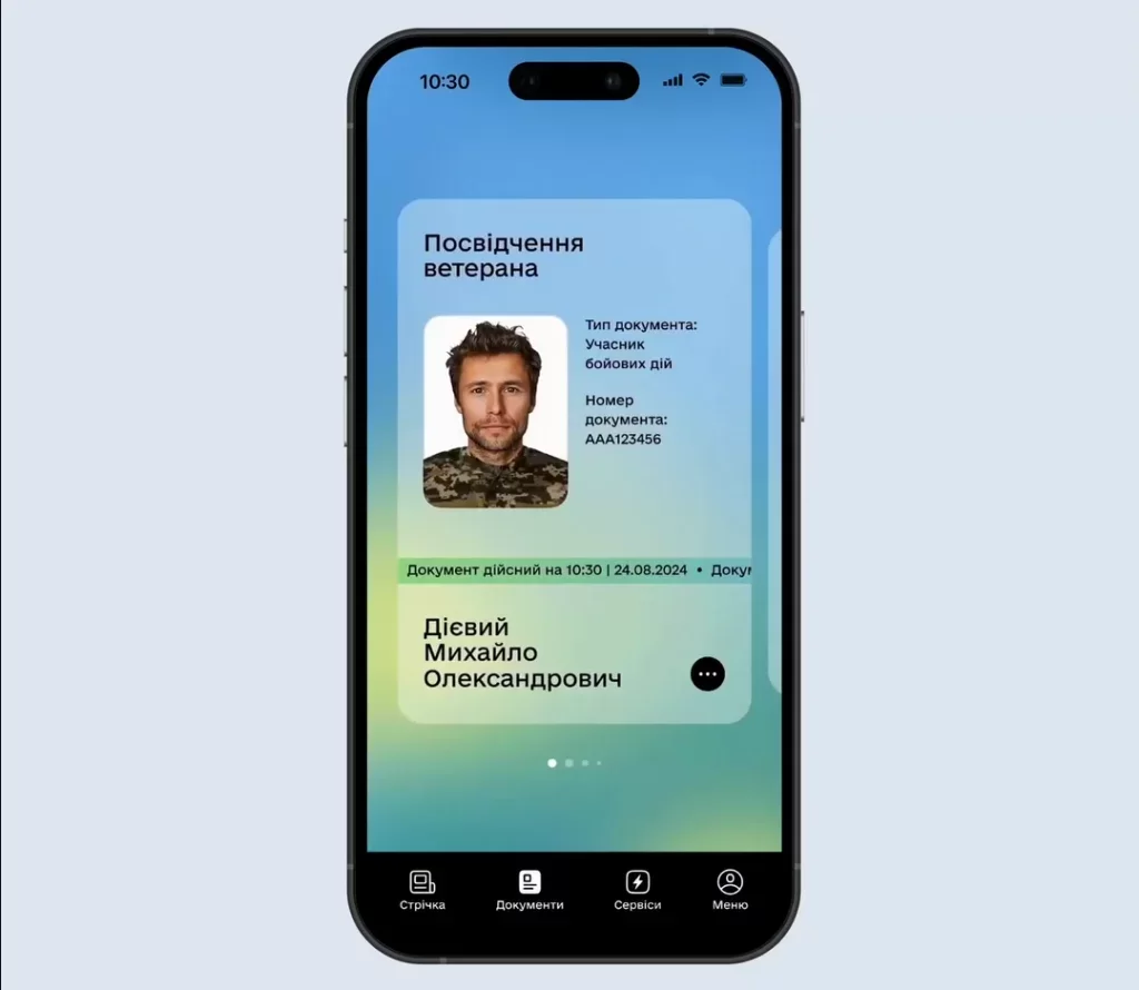 Прийшовши на стоянку, військовий, як завжди, назвав прізвище та показав документ-підтвердження статусу УБД — посвідчення ветерана у застосунку «Дія», де вказаний тип документу «учасник бойових дій».