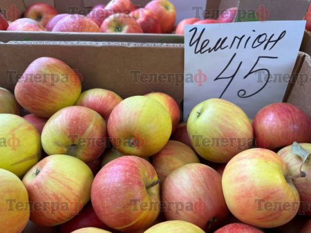 - Яблука — 45 грн/кг (сорти «Ліза», «Чемпіон», «Симиренка», «Моді», «Пепін»)
