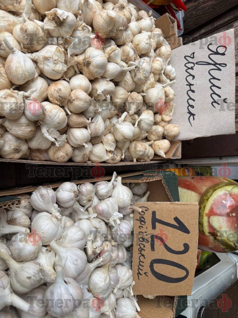 - Часник — 120 грн/кг (вітчизняний, сорти «борщівський»)