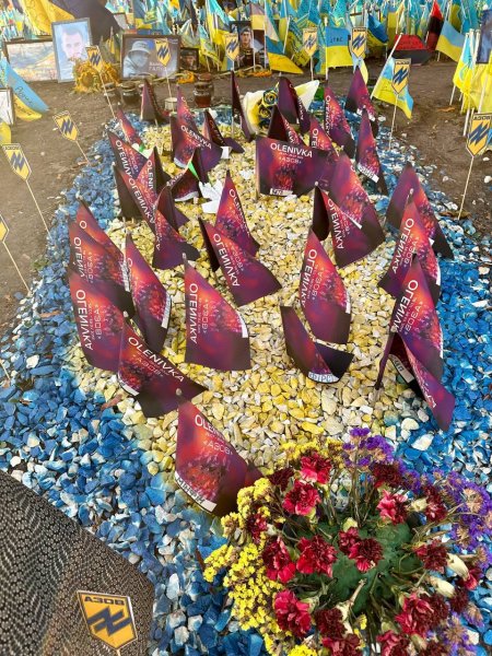 У 2024 році в Києві на Майдані з’явилася велика інсталяція, присвячена полоненим. Олександра розповідає, що «Спільнота Оленівки» долучалася до цієї ініціативи: