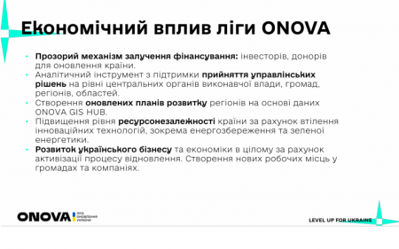 ONOVA у презентації обіцяє серед іншого «прозорий механізм залучення фінансування».