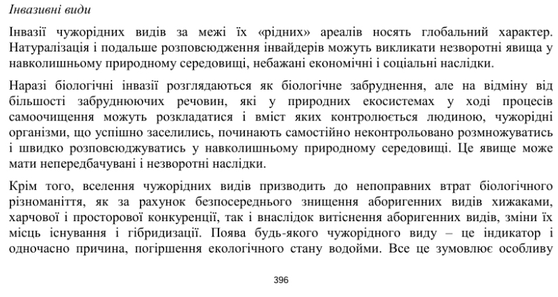 У документі зазначено, що чужорідні рослини спричиняють втрату біорізноманіття та погіршення екологічного стану водойм, а серед рекомендованих заходів — локалізація та видалення осередків інвазійних рослин у прибережних смугах.