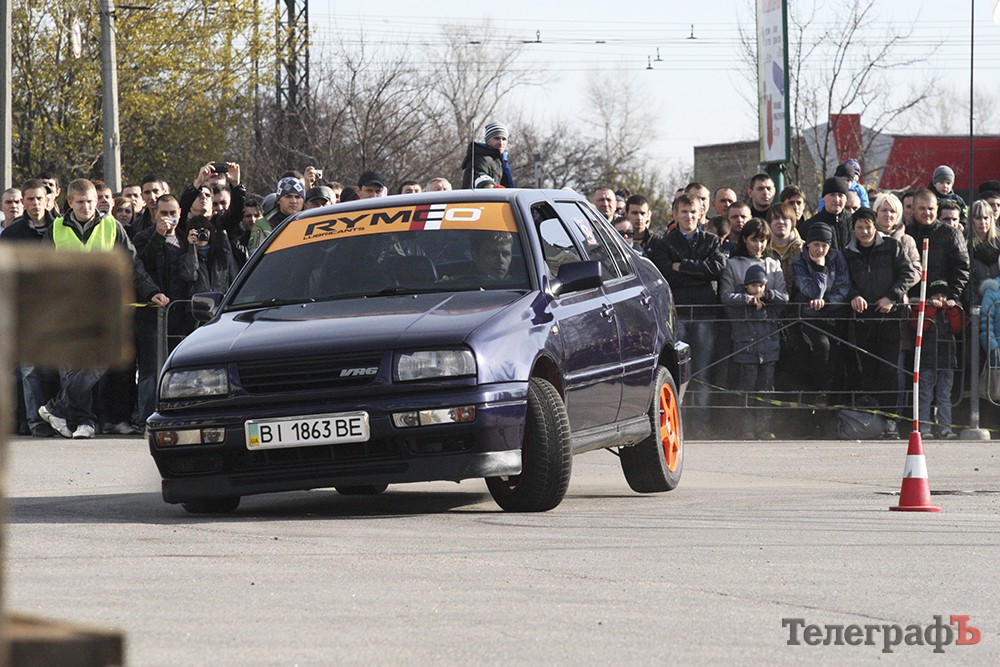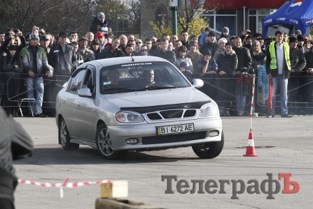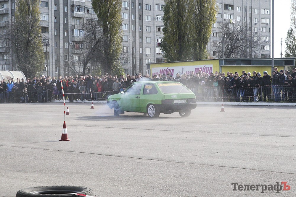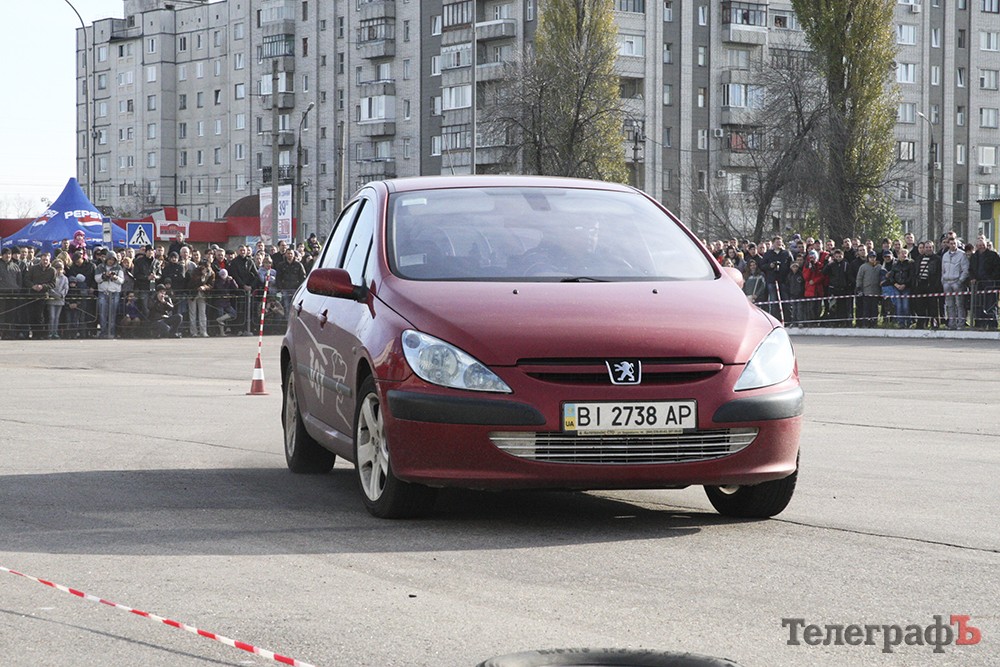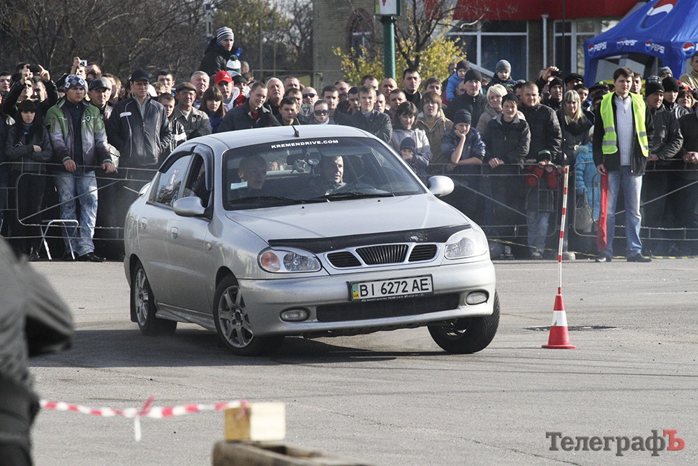 Главным мероприятием на автошоу были соревнования по слалому (фигурное вождение). В них взяли участие 16 пилотов из Кременчуга, Полтавы и других городов. Борьба была нешуточной – кому-то приходилось совершать повторные заезды, так как автомобили приходили на финиш одновременно. Проигравшие «жгли» резину, чем вызывали бурные аплодисменты. «Битва» наглядно показала, что главное для победы не автомобиль, а мастерство водителя. По результатам заездов места распределились следующим образом: