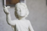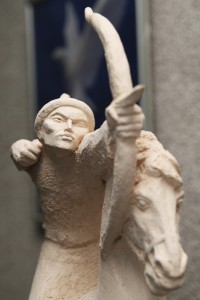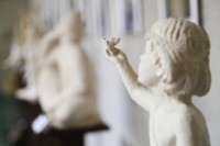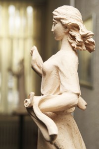 Индивидуальную выразительность и чувство динамики представленных образов придает работам автора также и фактура выбранного материала – глина шамот. Ее внешняя шероховатость и теплота оттенков, в отличие от изысканного сияния мрамора или классической выглаженности гипса, позволяет символически передать сияние Света, воплощенного в теплых тонах глиняных изваяний.