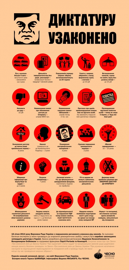 Кроме того, Верховная Рада принятием данного Закона «позволила» закрывать Интернет-сайты без решения суда. Такие полномочия предоставлены Национальной комиссии, осуществляющей госрегулирование в сфере связи и информатизации: она может обязать операторов Интернета ограничивать доступ к нему, если сайты работают как информагентства, но не имеют регистрации.