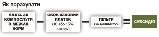 Субсидія призначається з урахуванням доходів усіх членів родини, зареєстрованих у житловому приміщенні. При цьому сума обов’язкового платежу (тобто суми, яку має сплачувати сім’я зі свого сукупного доходу за місяць) розраховується наступним чином: