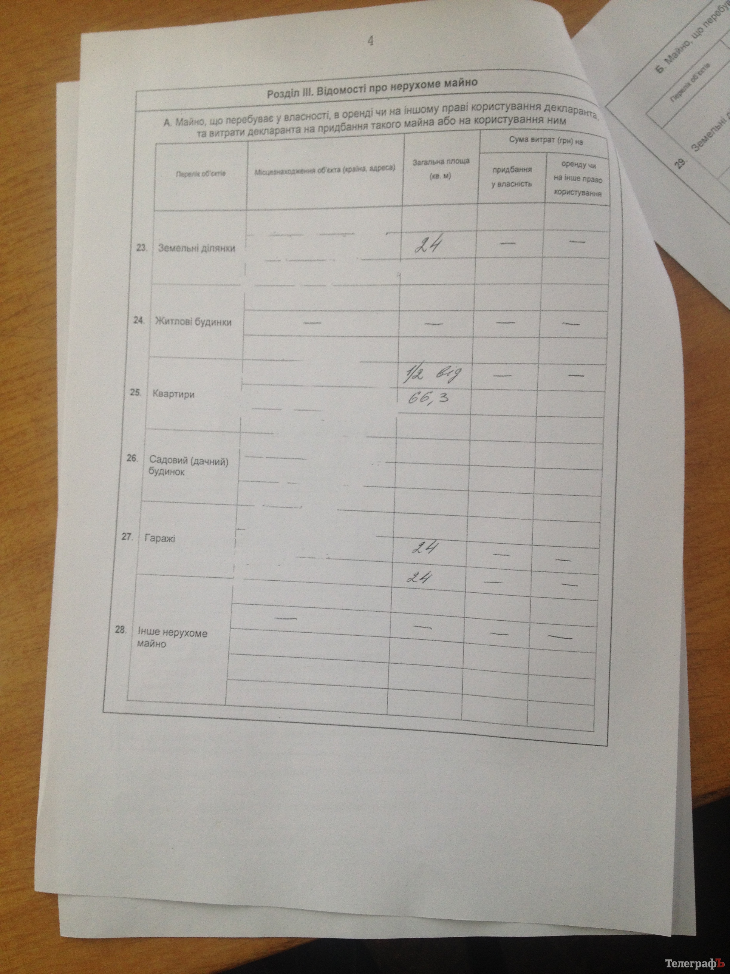 •  в собственности, в аренде или на ином праве пользования находятся: земельный участок общей площадью 24 кв м, два гаража (общей площадью по 24 кв м каждый) и совместно с членами семьи - квартира общей площадью 66,3 кв м;