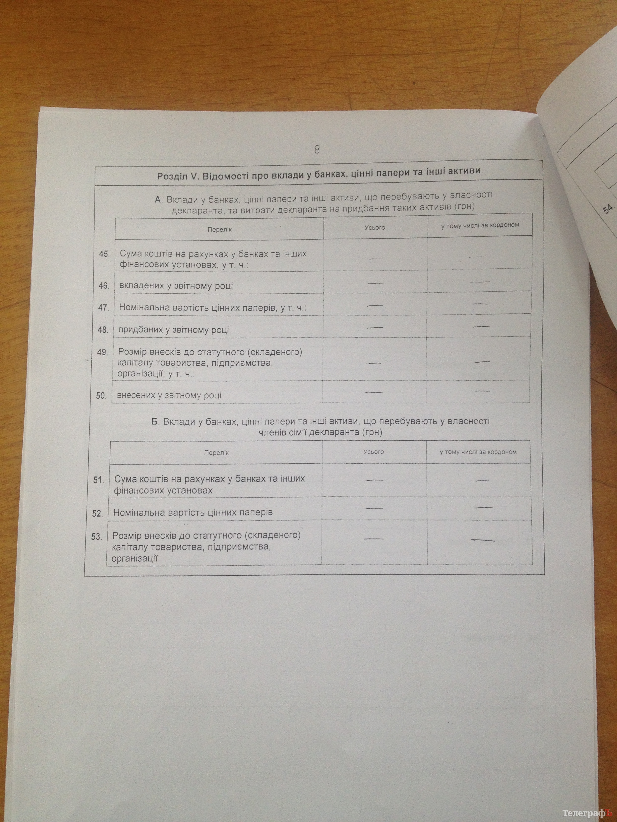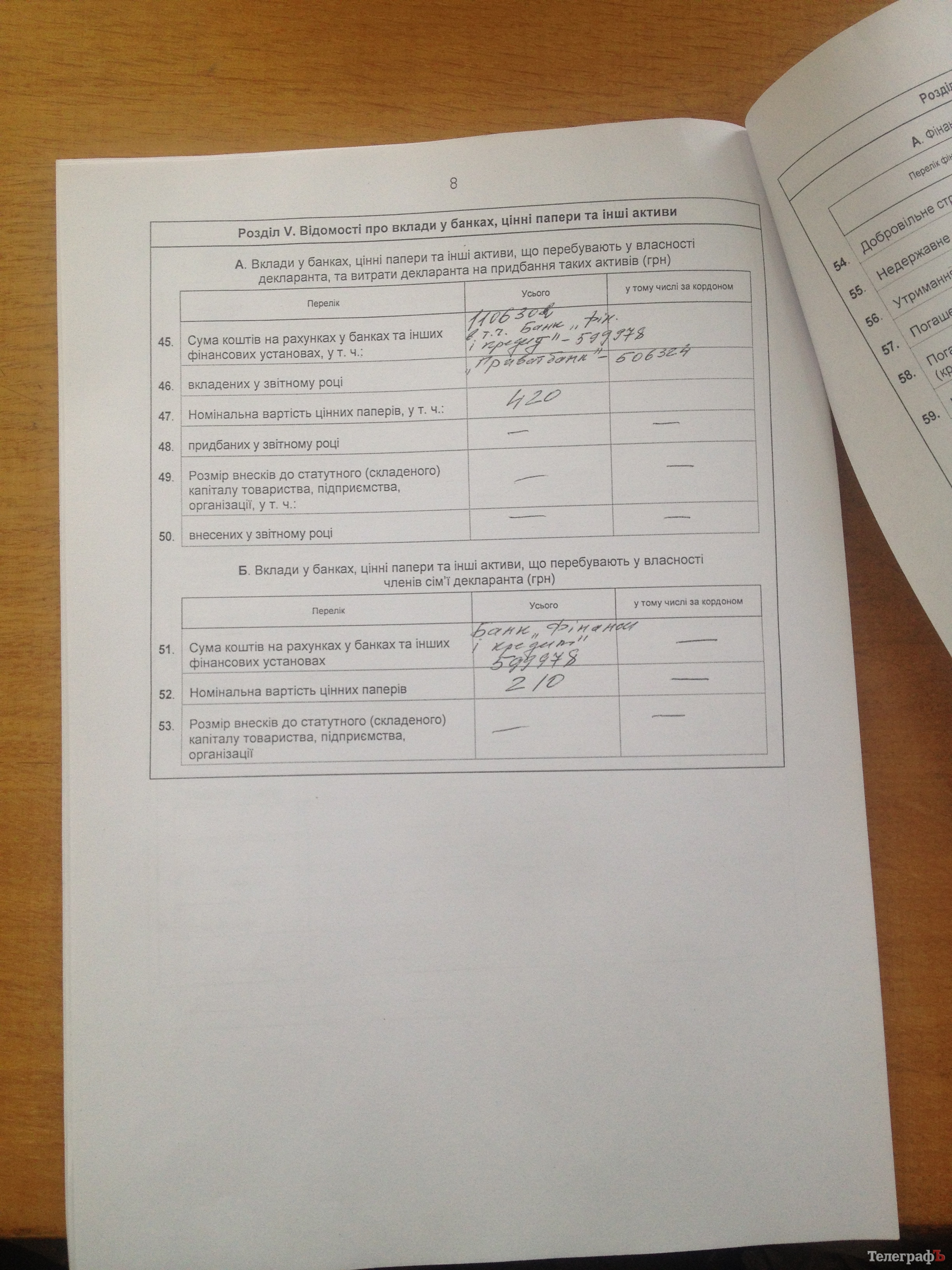 • сумма средств на счетах декларанта в ПАО «Ви Эй Би Банк» составляет 200 000 грн;