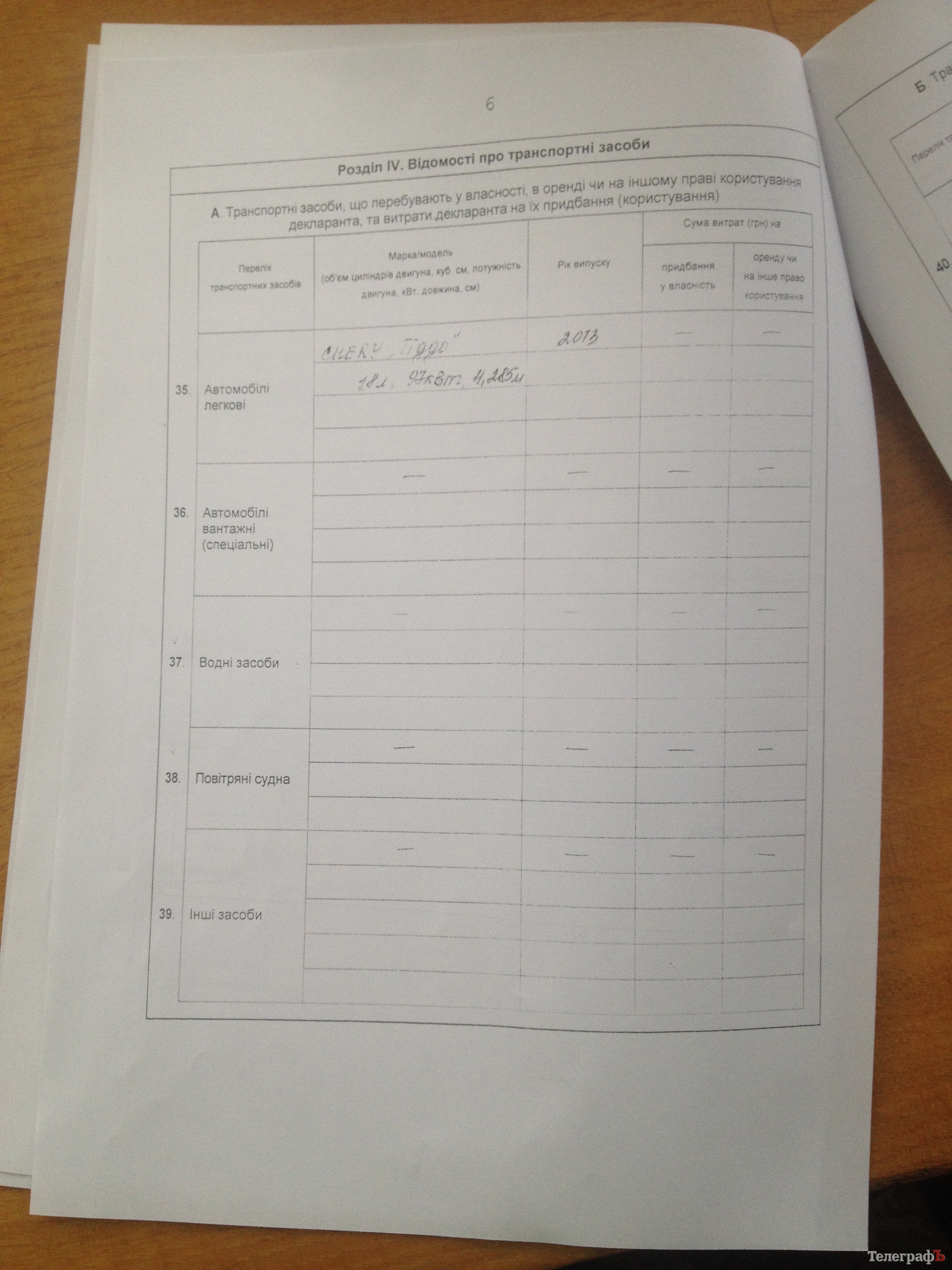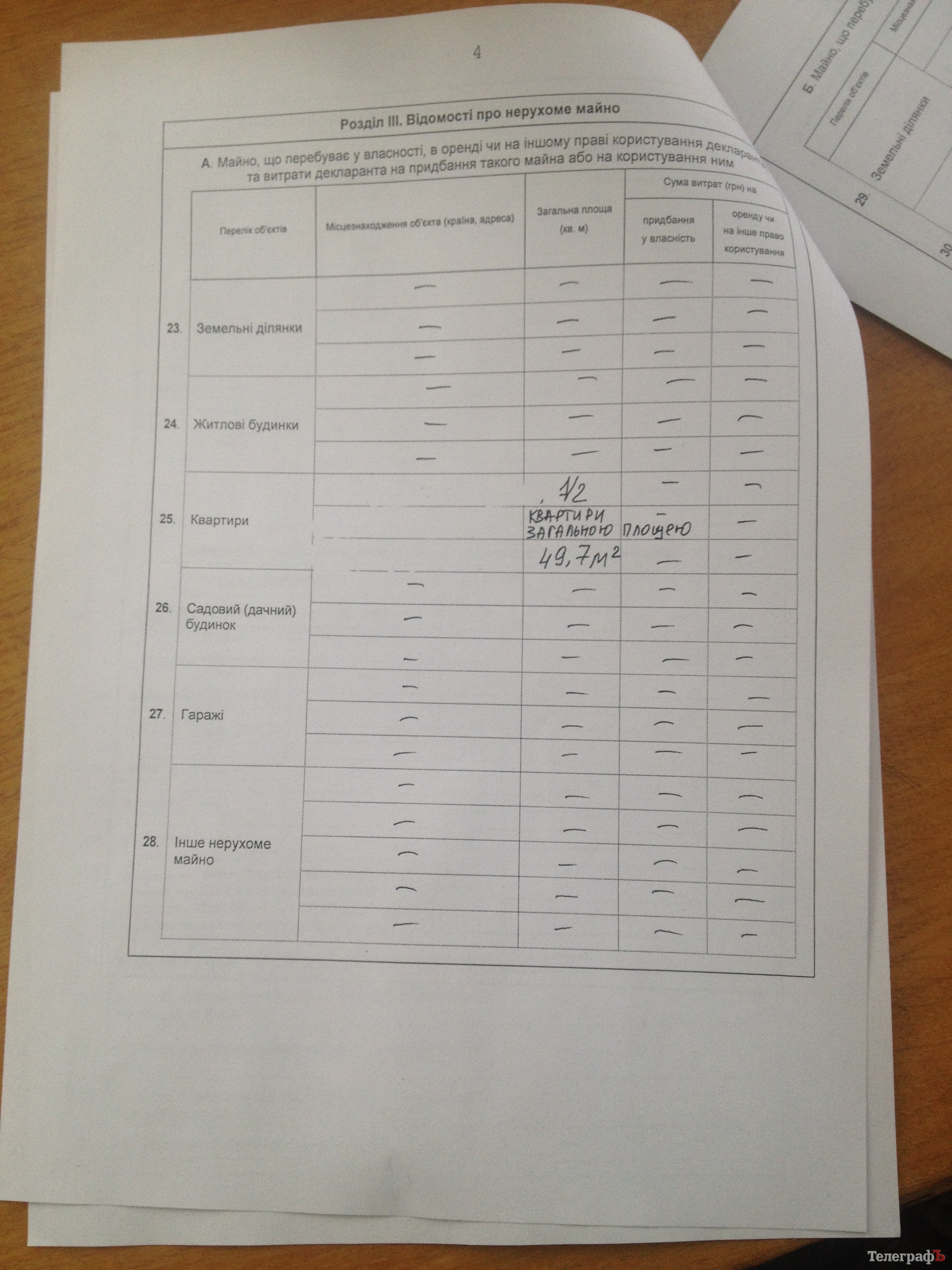 Первый заместитель городского головы Калашник В.В. в декларации об имуществе, доходах, расходах и обязательствах финансового характера за 2014 задекларировал