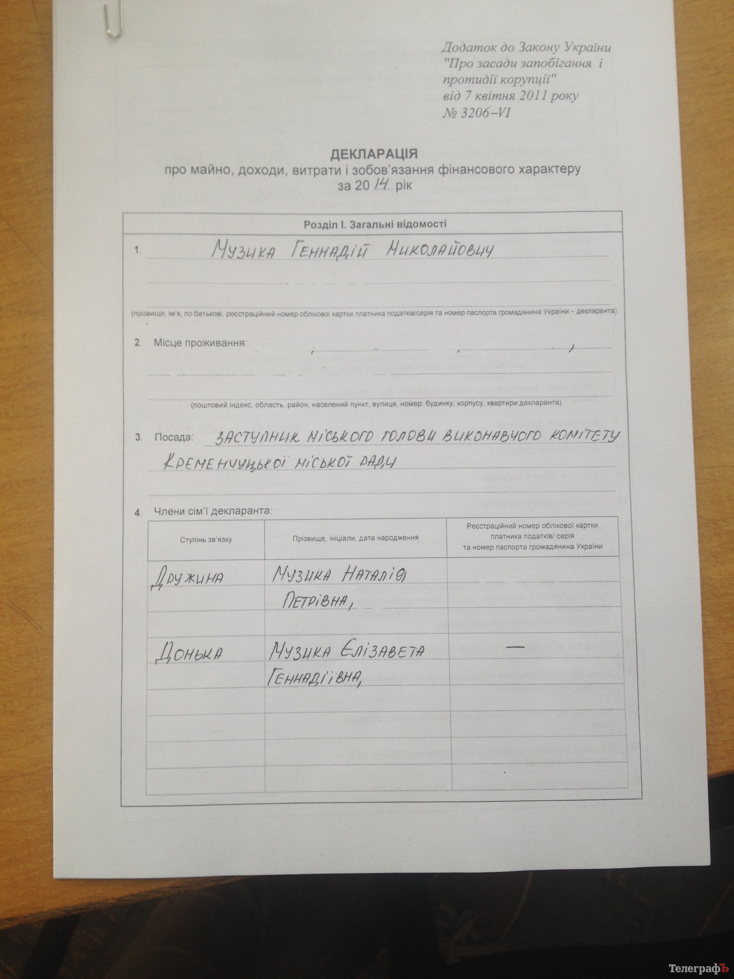 В Кременчуге чиновники Кременчугской мэрии опубликовали декларации об имуществе, доходах, расходах и обязательствах финансового характера за 2014 год, определенных частью 2 статьи 12 Закона Украины «О принципах предотвращения и противодействия коррупции», сообщает пресс-служба городской мэрии.