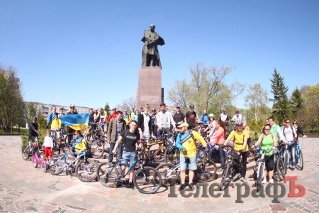 Вчера, 26 апреля в Кремнчуге прошел первый в 2015 году велопробег. Его участники проехали по городу в защиту граффити Шевченко, которое недавно облили краской хулиганы. Велосипедисты скандировали "Слава Украине - Героям Слава".