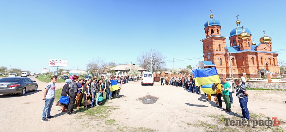 На въезде в Кременчуг, возле проходной Крюковсого вагоностроительного завода (Антон там работал какое-то время), на съезде с моста и возле граффити Шевченко стояли горожане с флагами Украины.