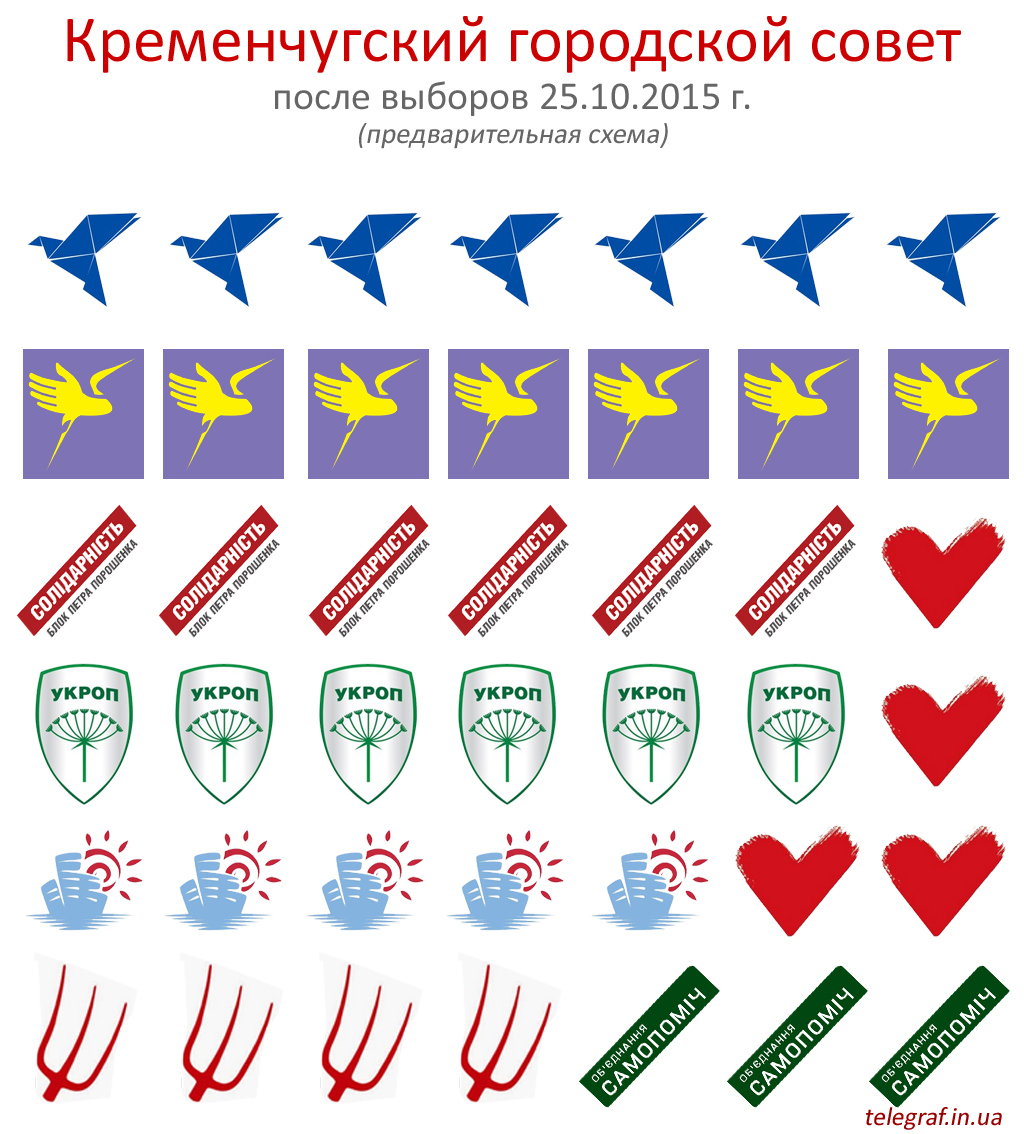 Фамилии депутатов, получивших мандаты, будут названы Кременчугской избирательной комиссией после подсчёта голосов на участках в Автозаводском и Крюковском районах и составления рейтинга депутатов от каждой партии. Согласно нынешнему закону о местных выборах, первый мандат получает лидер списка политической партии, а следующие – его партийцы, которые набрали на своих округах наибольший процент голосов.