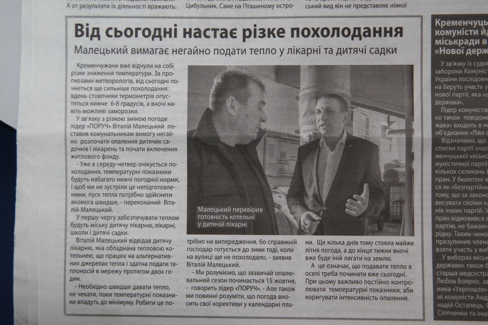 Попри це кандидат Малецький набрав 21,39% голосів. На нашу думку, тут спрацювали три потужних фактора: тінь Бабаєва, безплатні газети та ефективна мережа агітаторів. Віталій Малецький не «вигадував велосипед», він повторив усе, що у 2010-му році зробив на виборах Олег Бабаєв. Бабаєв у жовтні 2010-го заявив, що «змусить чиновників увімкнути опалення в місті» (дивись фото). І Малецький у жовтні 2015-го заявив те саме. Бабаєв лазив по дахах будинків, перевіряючи якість ремонтів, і Малецький туди поліз. Зрештою, Бабаєв започаткував жовтневі міські суботники – саме під місцеві вибори. І Малецький організував жовтневий суботник під вибори. Так нашвидкоруч, за три місяці, формувався образ кандидата Мадлецького, «вірного соратника Олега Бабаєва».