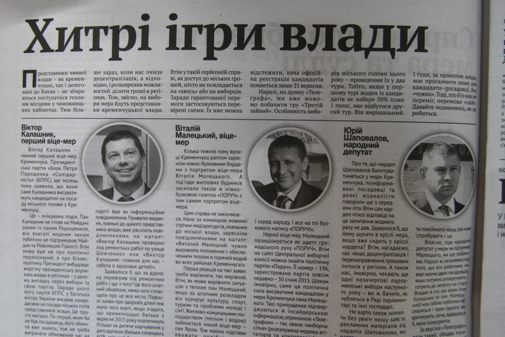 А писала про всі діяння кандидата Малецького газета «Аvтограф». Під час виборів її роздавали та розносили по квартирах безкоштовно. Безкоштовна газета – надпотужний фактор впливу. Якщо вам у поштову скриньку кладуть не куцу агітаційну листівку, а безкоштовну кольорову газету з програмою телепередач, навіщо вам ще якісь газети? Та ще в такий скрутний час, коли доводиться рахувати кожну гривню. Тож значна кількість виборців дізнавалася про перебіг виборчої кампанії виключно з безкоштовних видань. А вже «Аvтограф» старався як міг. На його шпальтах кандидата Малецького і Прометеєм називали, і навіть зі срібним доларом порівнювали (що, на нашу думку, більше в тему, адже вибори – це завжди боротьба за гроші). Так у безкоштовних газетах формувався образ молодого, симпатичного, сяючого, як новий срібний долар, кандидата Малецького.