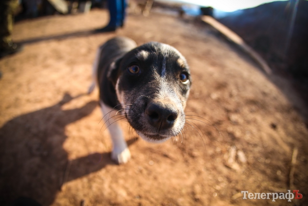 На позициях много щенков. Военные говорят, что с животными им веселее. Собаку зовут Кнопка.
