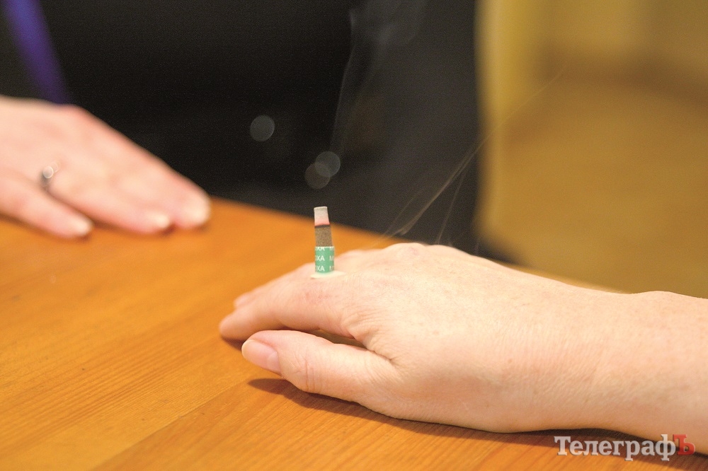 Сперва эту самую точку грели травяными сигарами – их еще называют моксами. Их поджигают и воздействуют теплом на нужную зону.