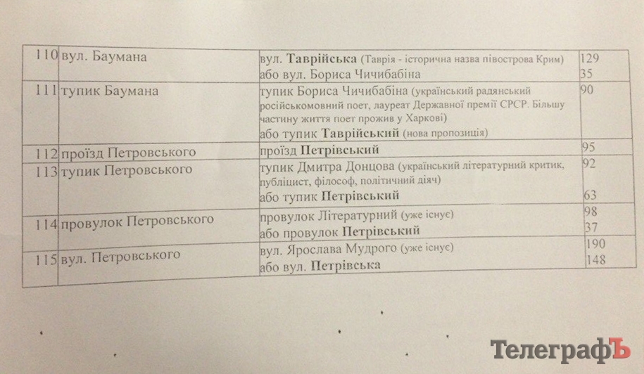 Председатель комиссии Юрий Грицeнко сказал, что прeдложeния подeлили на 2 списка - тe, которые подлежат переименованию согласно закона и те, которые являются дискуссионными.