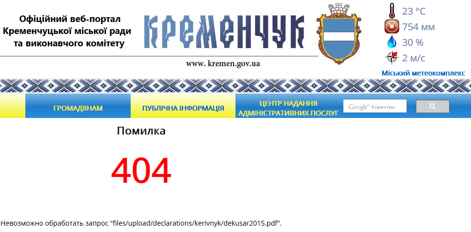 При нажатии на ссылку с его декларацией выводится сообщение об ошибке 404.