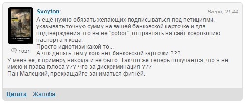 А пока нет банковской карточки или цифровой подписи - нет петиции.