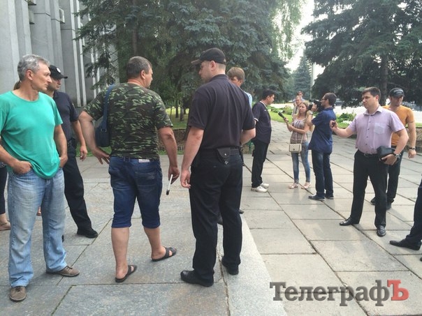 Бунт переместился на улицу. Одного из активистов хотят забрать в отделение. Дмитрий Ломов, заместитель начальника городского отдела полиции говорит, что от этого мужчины в адрес членов комиссии и Владимира Пелипенко были неуензурные выражения.