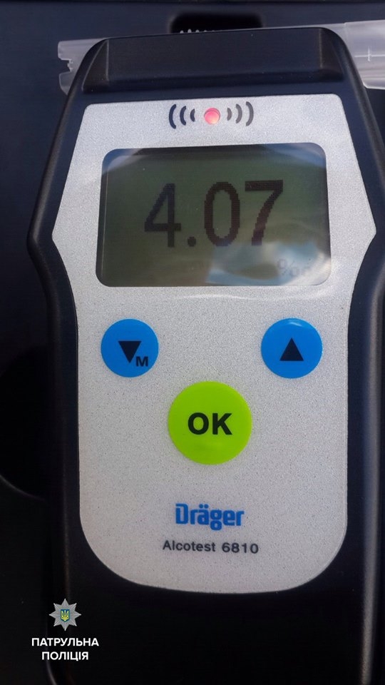 Кременчугские патрульные остановили водителя с 4,07 промилле в крови. Как сообщает пресс-служба патрульной полиции, это произошло 15 сентября, а на часах было 13:00.