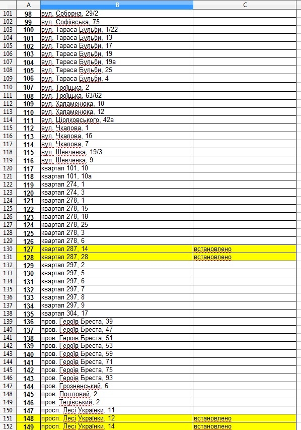Список домов, которые должны оборудовать счетчиками по инвестиционной программе: