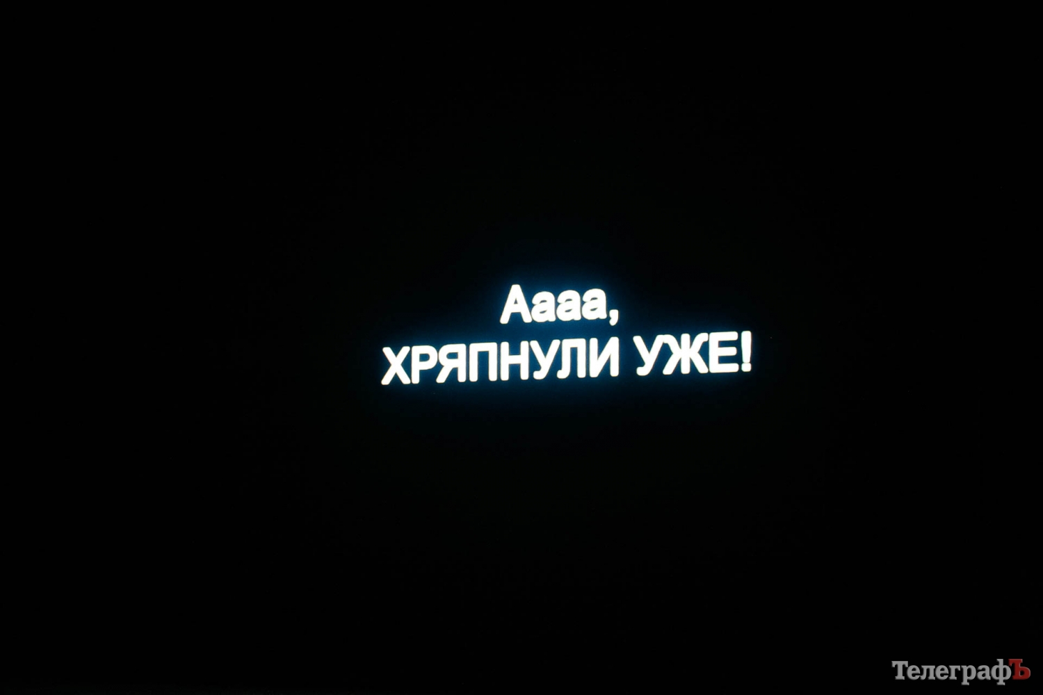 Начался концерт с небольшого интерактива с залом — со зрителями «говорил» большой экран, который ребята, по их словам, стащили с площади Независимости. Экран просил зрителей громко аплодировать, угрожая тем, что выступление начнется только в том случае, если аплодисменты будут достаточно громкими, а иначе — денег за билеты никто не вернёт;). Также, специально для пацанов с Молодёжного, экран просил похлопать жителям этого района.