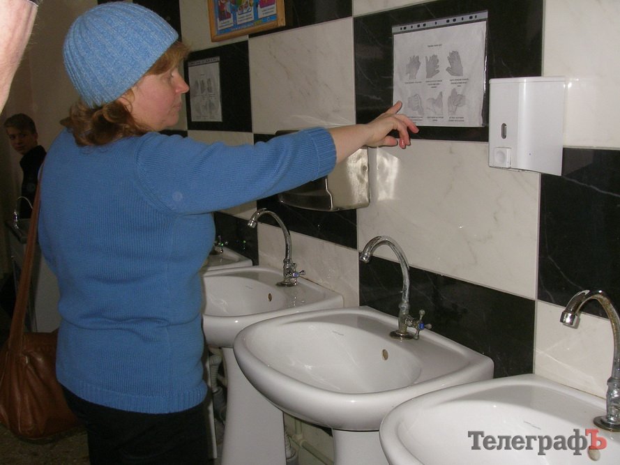 Также депутат обратила внимание на то, что возле умывальников, где дети моют руки (должны мыть руки) перед едой, нет жидкого мыла. Впоследствии, во время бриффинга, директор лицея утверждала, что жидкого мыла возле умывальников нет, потому что все дети, в том числе и 11-классники, перед столовой моют руки в своих классах.