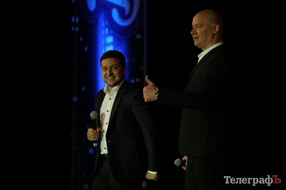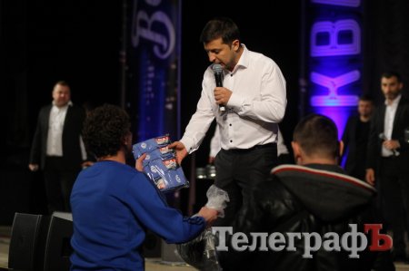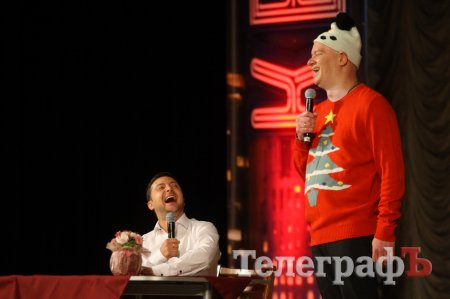 - Знаете, давно у вас не были – три года прошло, - поприветствовал кременчужан Владимир Зеленский. - Поздравляем со всеми праздниками – с Новым годом 2015, 2016, 2017 … Меня зовут Вован Шпала, а это Жека Кучерявый.